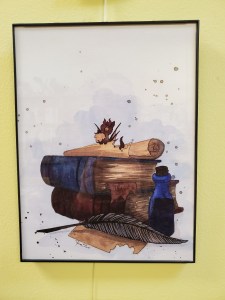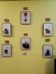 Renee has their work hanging throughout the month of February. Many dragons, frogs and other wonderful creatures. They are framed and ready for sale.